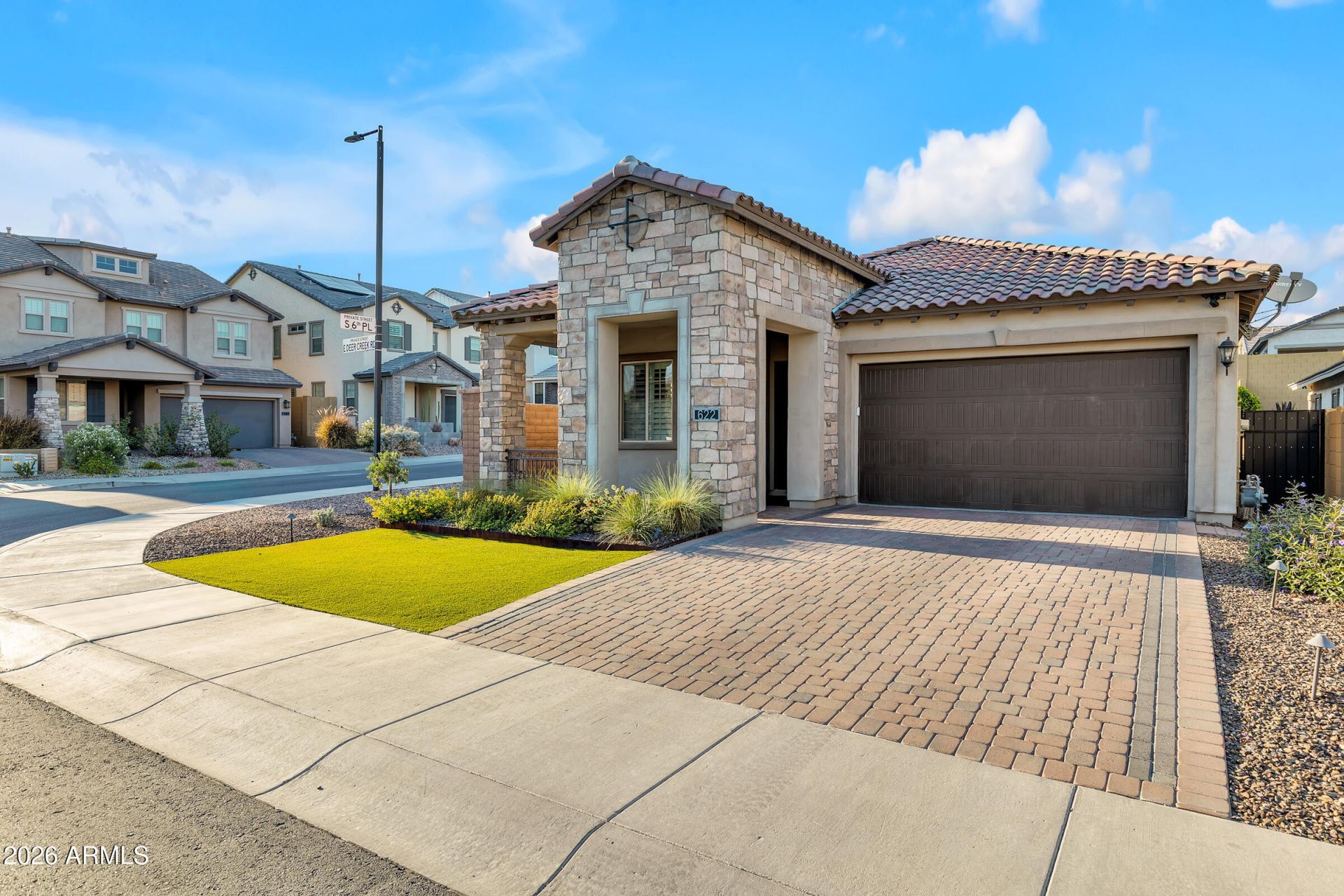 Welcome home to this beautiful 3-bed / 2-bath single-level home built in 2021, located in the highly sought-after gated community of Palma Brisa in Ahwatukee. Positioned on a premium corner lot next to a greenbelt with a basketball court, this home offers added privacy, thoughtful updates, high-end finishes, and a highly desirable location within the neighborhood.Great curb appeal starts with a covered front patio and a striking iron entry door. Inside, youll find a versatile open-concept floor plan designed for both everyday living and entertaining. One of the bedrooms is currently used as an office, offering flexibility for remote work, guests, or additional living space. The home features upgrades such as plantation shutters, recessed lighting, upgraded fixtures, ceiling fans, pristine tile flooring, and fresh paint throughout. Exterior improvements include newly installed landscaping that enhances both curb appeal and usability.The kitchen is a true centerpiece, featuring white cabinetry with crown molding and hardware, quartz countertops, stainless steel appliances, including a 5-burner gas cooktop with hood and a new refrigerator, a large island with sink and bar seating, and a walk-in pantry. It opens seamlessly to a bright, window-lined dining area and spacious living room, creating a light and inviting atmosphere. Sliding glass doors lead to the backyard, making indoor-outdoor living effortless and allowing you to enjoy Arizona sunshine year-round.The spacious primary suite offers a private retreat with a beautifully designed ensuite bathroom featuring dual sinks, an oversized glass walk-in shower, a private toilet room, and a massive walk-in closet with custom built-in shelving by Classy Closets.The laundry room is generously sized with abundant cabinetry and a utility sink, adding both convenience and functionality. The clean 2-car garage includes epoxy flooring and built-in storage.Step outside to a charming, private backyard designed for relaxation and entertaining, complete with a covered patio, synthetic grass, a fountain, and thoughtfully placed trees and shrubs.Palma Brisa is known for its gated entry, modern design, and resort-style community feel. Residents enjoy beautifully maintained common areas, multiple amenity spaces, expansive greenbelts, and recreational areas, all connected by walking paths, creating a vibrant, walkable neighborhood in the heart of Ahwatukee.